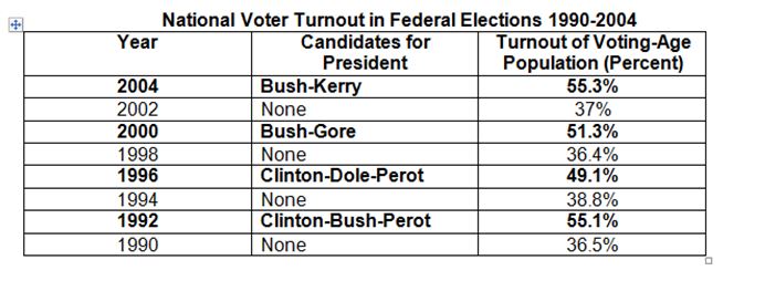 CE.5e What factor is most likely to account for the difference in voter turnout between the bold and the non-bold years?